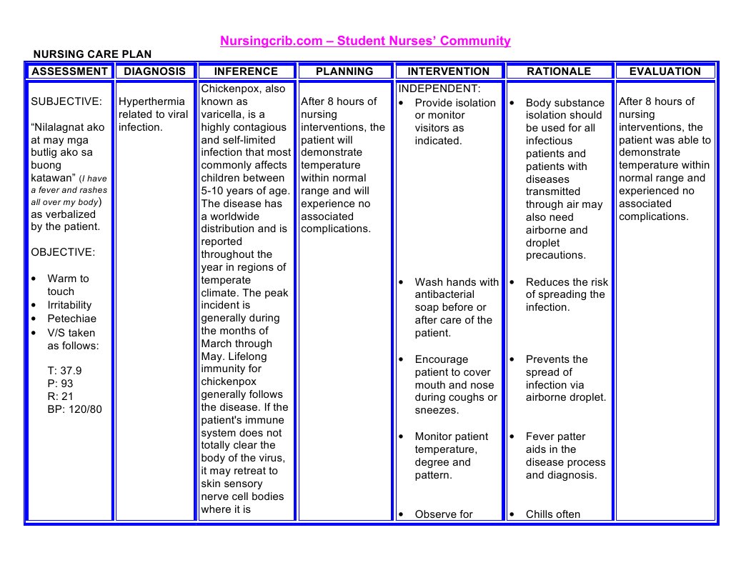 Nursing Care Plan Assessment Diagnosis Inference Planning Intervention