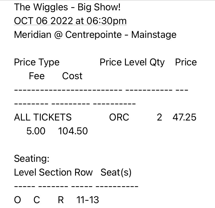 Aisle Floor Seats to The Wiggles in Ottawa Other Ottawa Kijiji