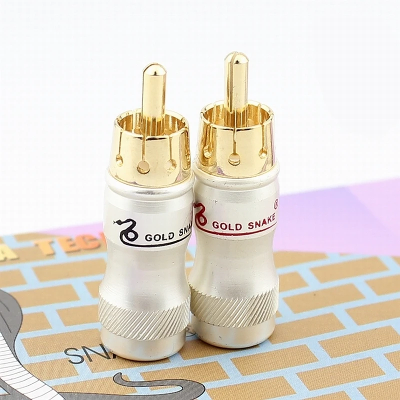 10pcs/lot DIY gold snake RCA Plug HIFI Goldplated Audio Cable RCA Male