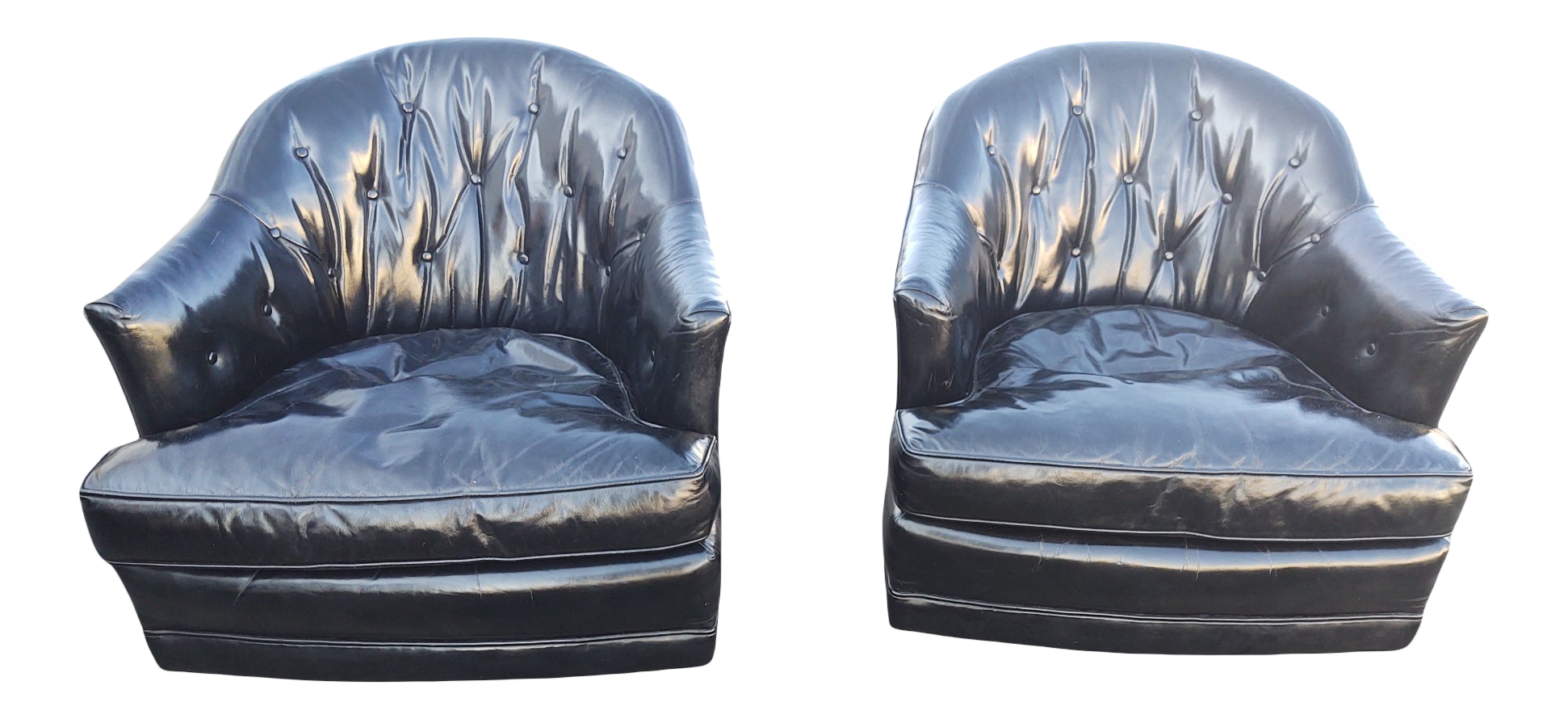 1970s Black Patent Leather Swivel Rockers by Schoonbeck (Henredon) a