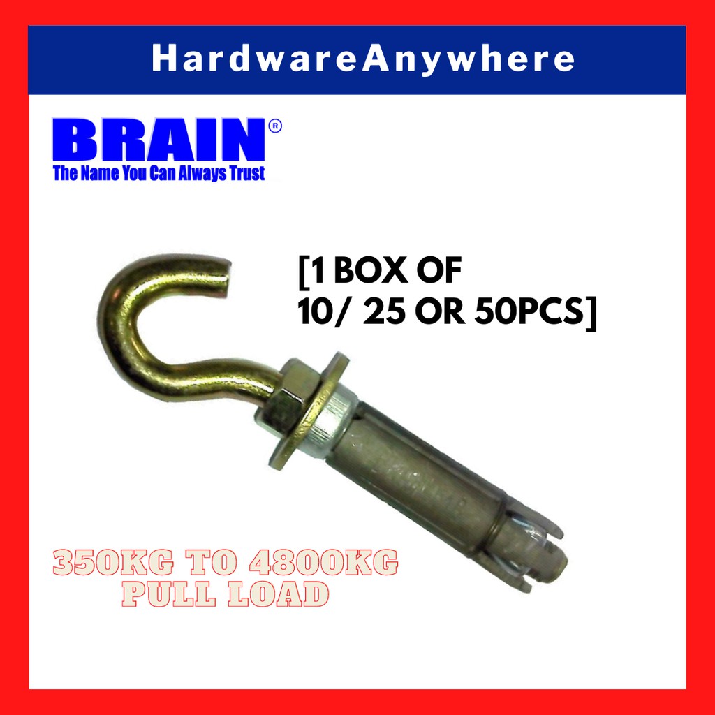 BRAIN TRAC Expansion Eye Bolt [1Box] Bent Bar Anchor Bolt/ JHook