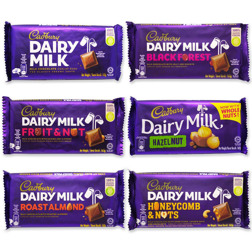 Cadbury Dairy Milk 165g/160g (chocolate/hazelnut/fruit&nut/roast almond
