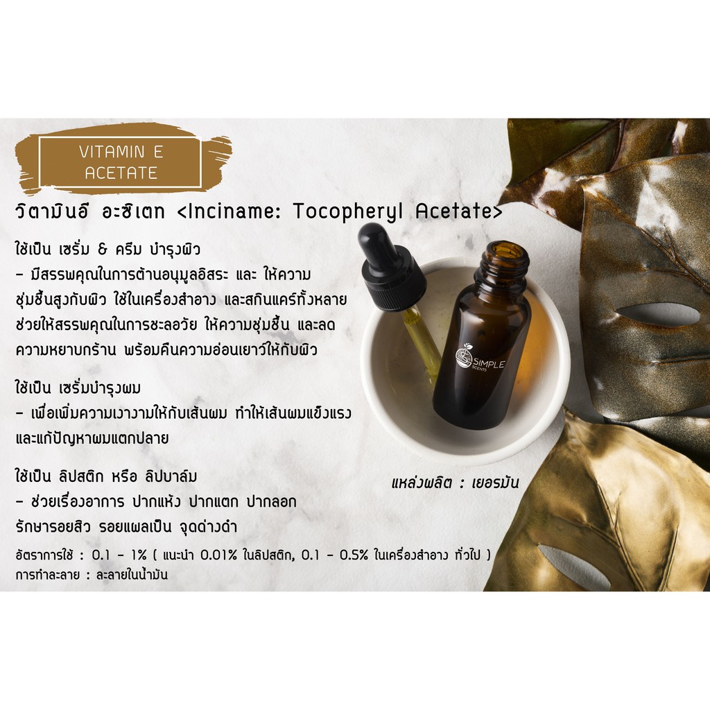 วิตามิน อี อะซิเตท Inci name Tocopheryl Acetate 25 ml / 50 ml Vitamin