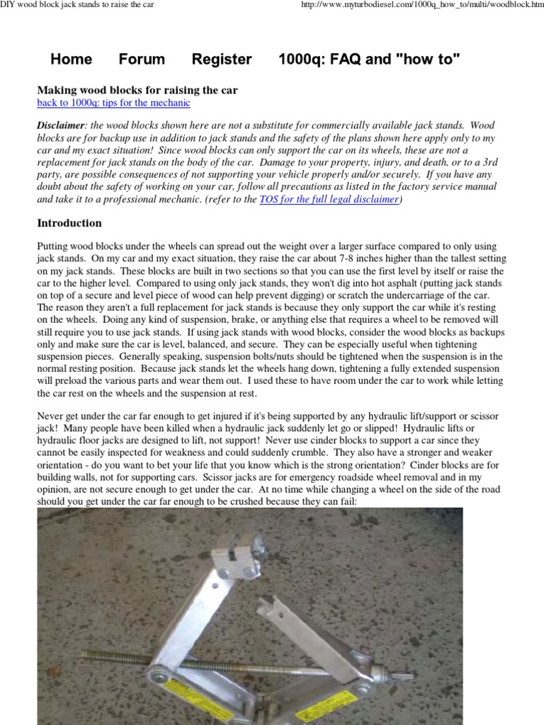 DIY Jack Stand Lifts. How To Safely Support your Car, Truck or SUV Homemade Wooden Jack Stands (wheel cribs) total cost to build is $14 do you need more room under. Are you ready to take your diy skills to the next level and build your own wooden jack stands? The dimensions are 18” long x 11” wide x 12” tall. To build wooden jack stands, one of the first steps is cutting and assembling the base.. Homemade Wooden Jack Stands.