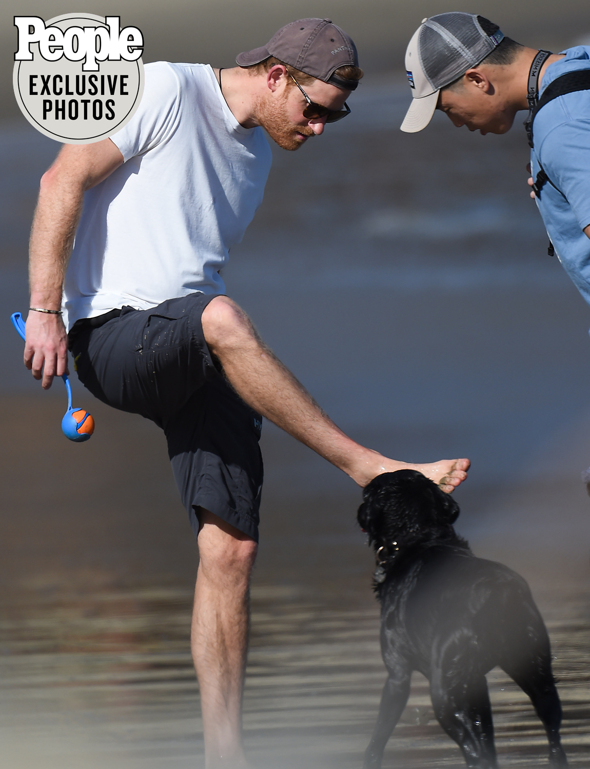 Prince Harry Is in Beach Mode as He Plays Fetch with Dog Pula in