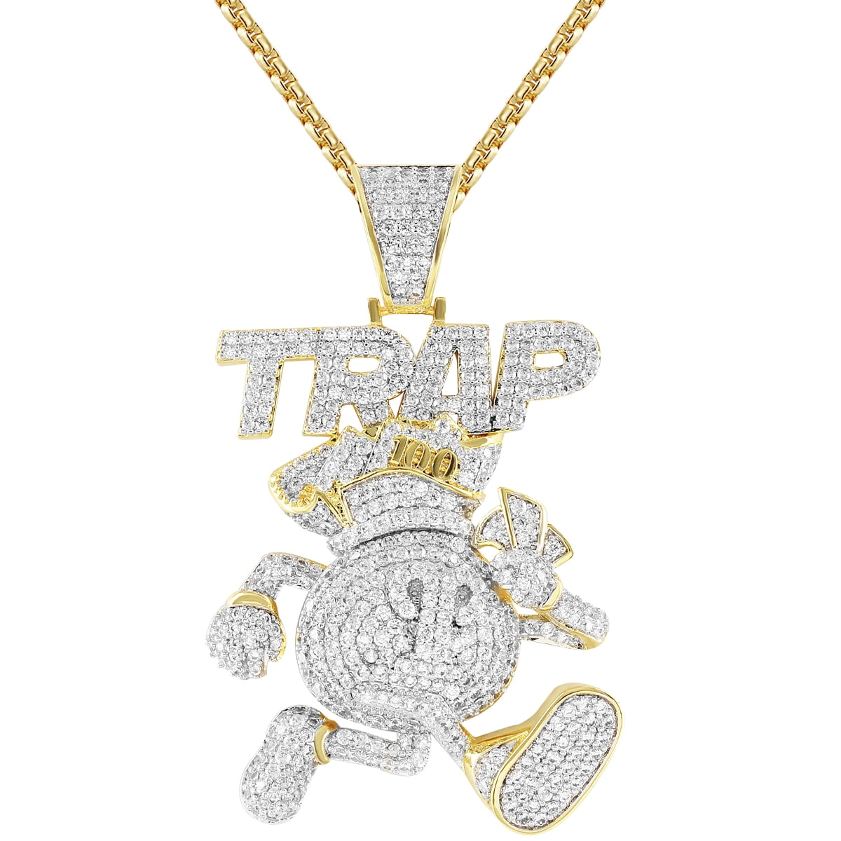 Men's Running Dollar Bag Cash Bills Trap 14k Gold Finish Pendant