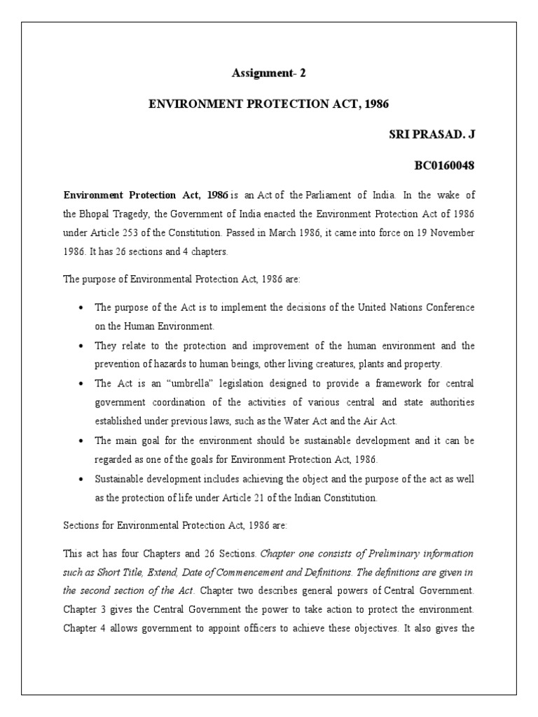 A2Environment Protection Act, 1986 PDF Environmental Protection Public Law