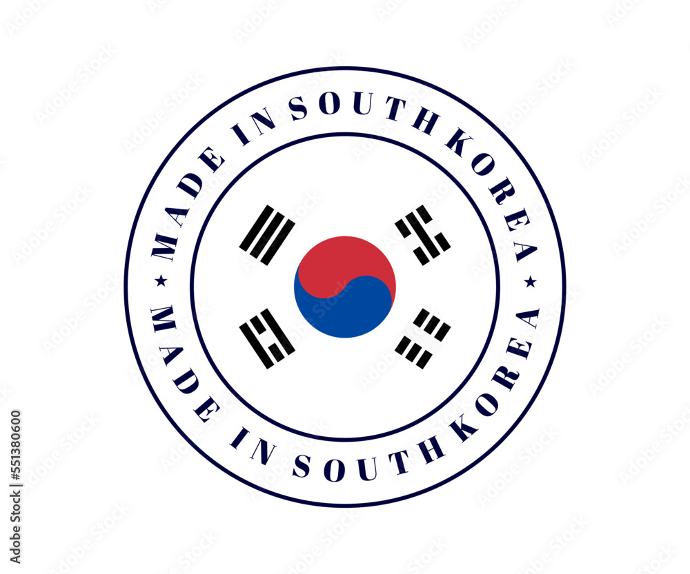 Made in South Korea circle label. South Korea flag, Korean emblem for product, Korean flag label