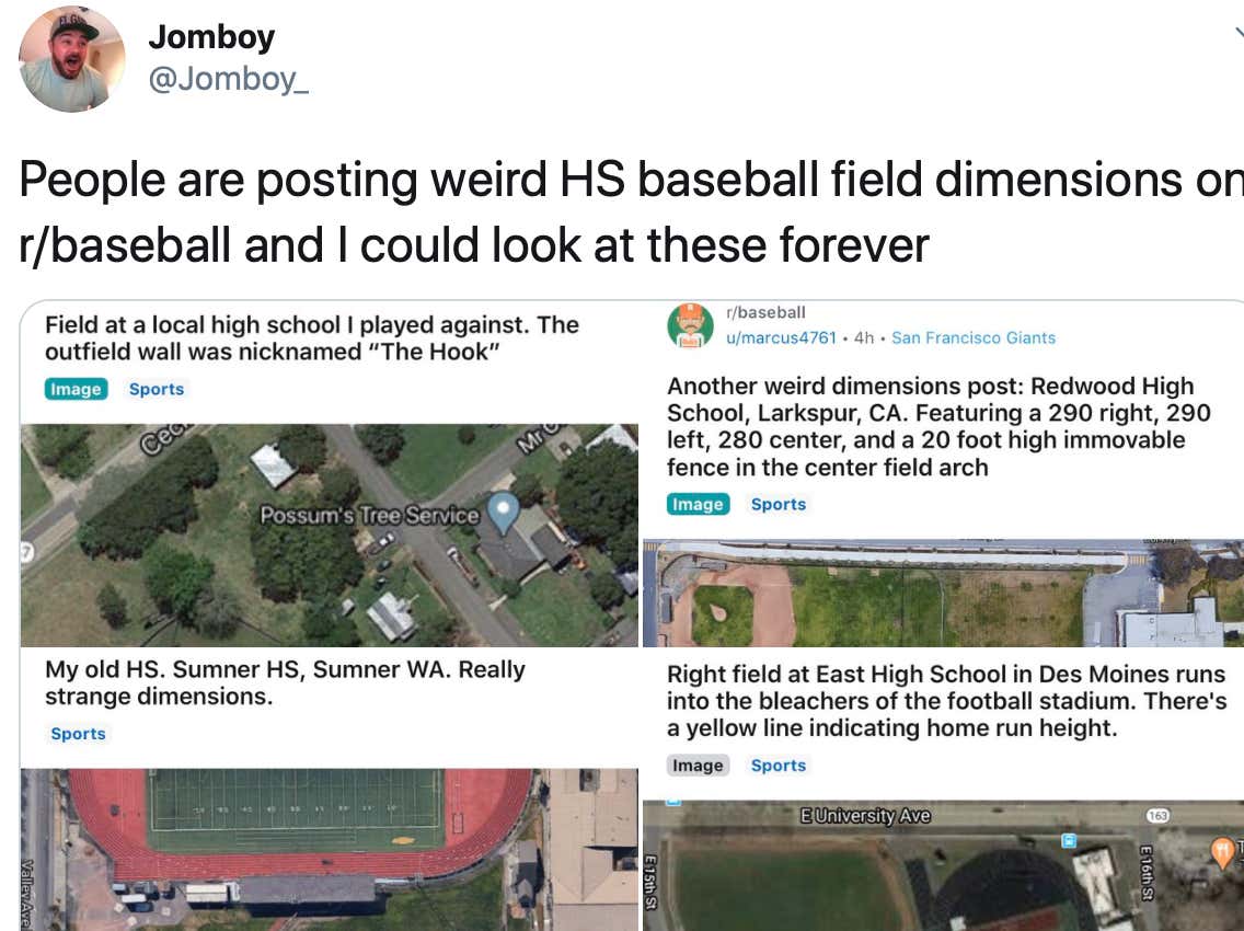 Jomboy on Twitter "People are posting weird HS baseball field dimensions on r/baseball and I Weird Baseball Field Dimensions Did you know that major league baseball is the only sport where the ground rules are different from venue to venue? One of the great joys of baseball is just how much the game embraces being weird as heck. Nicknamed “the hook,” left field at cecilia high school in breaux bridge, louisiana must be the toughest defensive spot in the. Weird Baseball Field Dimensions.