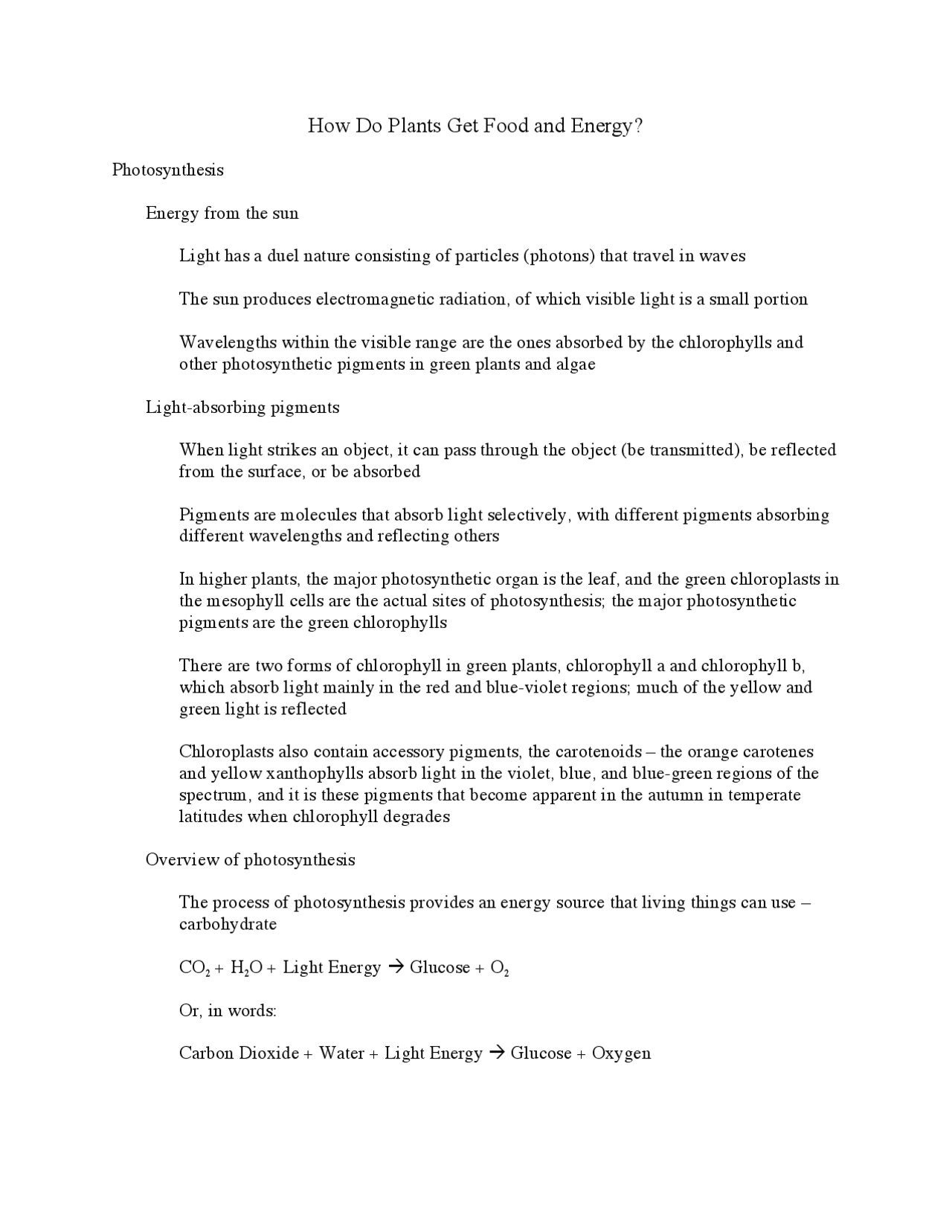 How do Plants Get Food and Energy Handout Notes BIO 406D Study