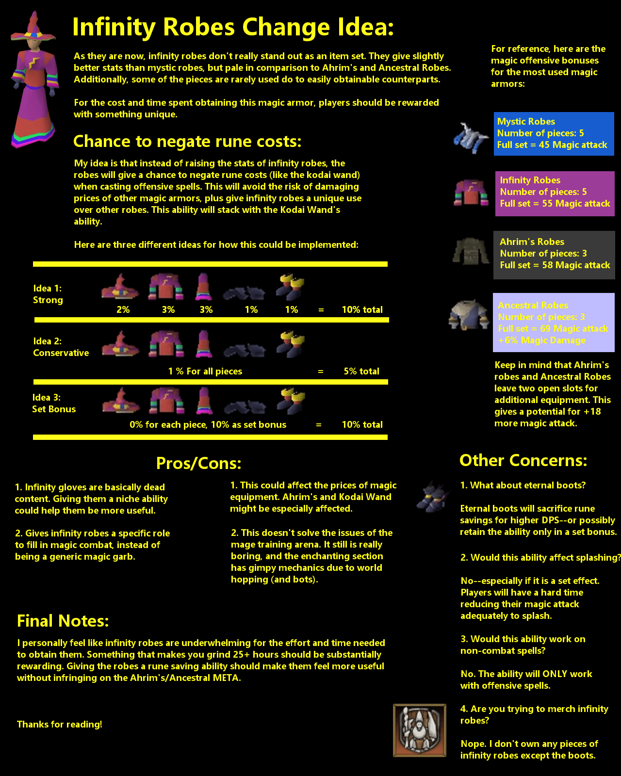 Osrs Infinity Robes Learn about the infinity robe armour, a set of magic armour from the mage training arena minigame. It can be attached to hat, top and bottoms of the infinity robes set. Users share their opinions on whether infinity robes are worth getting after the upcoming damage buff. It is part of the infinity robes set, which requires 50 magic and.. Osrs Infinity Robes.