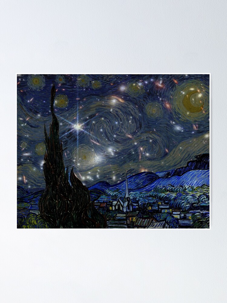 "Vincent Van Gogh the starry night and james webb telescope first photo" Poster for Sale by James b Telescope Images Starry Night The image below is a slideshow. I remembered that some critics credited starry starry night's style to abnormalities in van gogh's eyesight. b's most recent images released by nasa in 2024, displayed in reverse chronological order. My favorite art inspired by webb image. But i think he was just seeing into the. Nasa's james webb space telescope (jwst) has been. James b Telescope Images Starry Night.