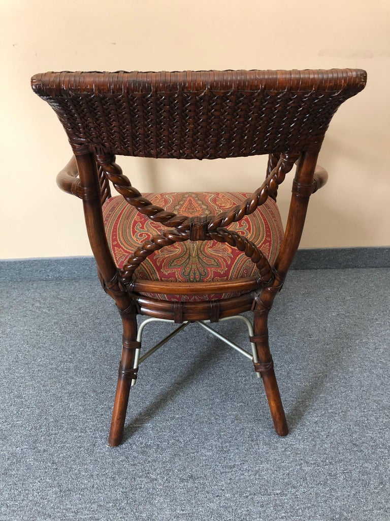 Stylish Wood and Rattan Armchair with Paisley Upholstery at 1stDibs