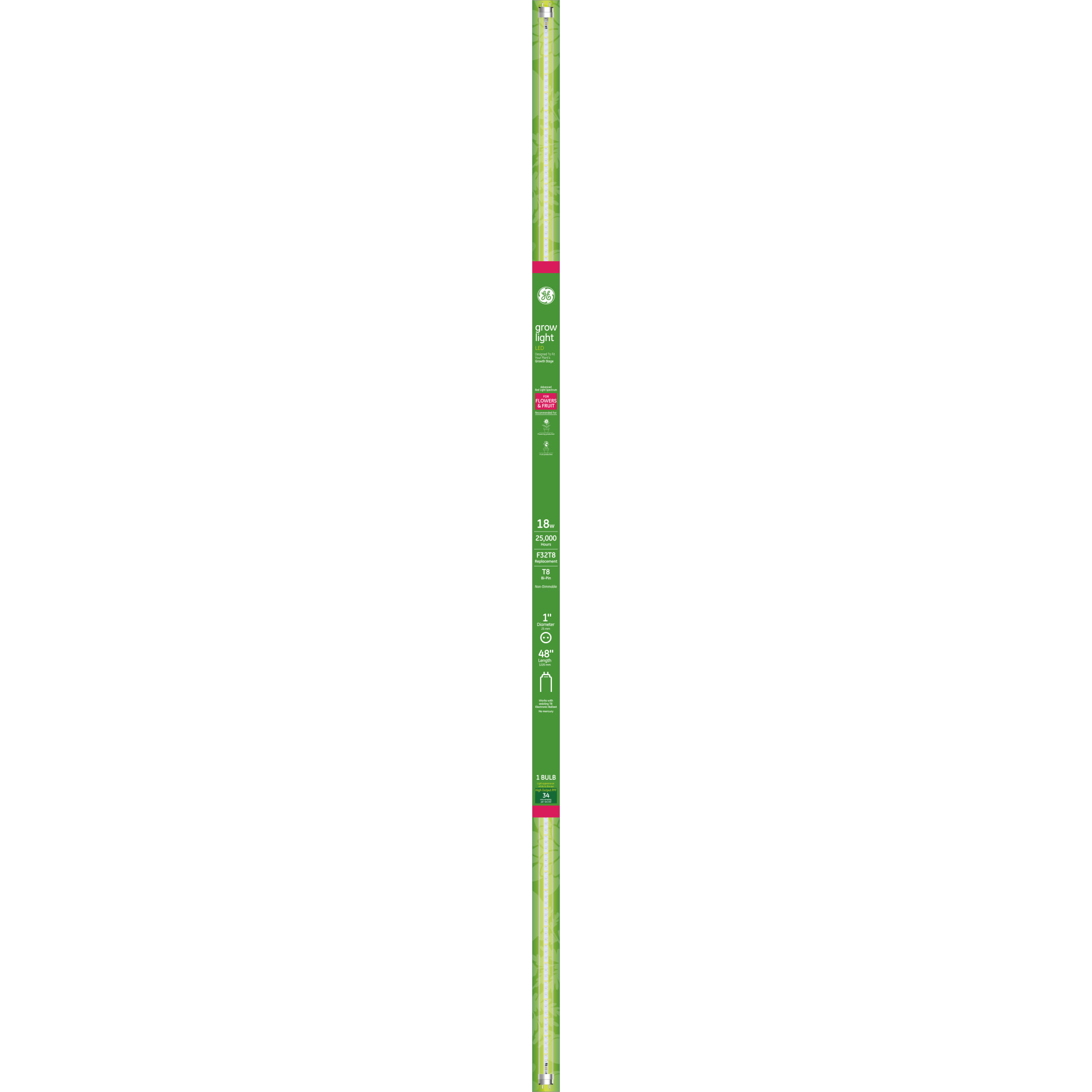 GE Grow LED Light Bulbs for Fruits and Flowers, T8 Bulb, 18 Watts, 48