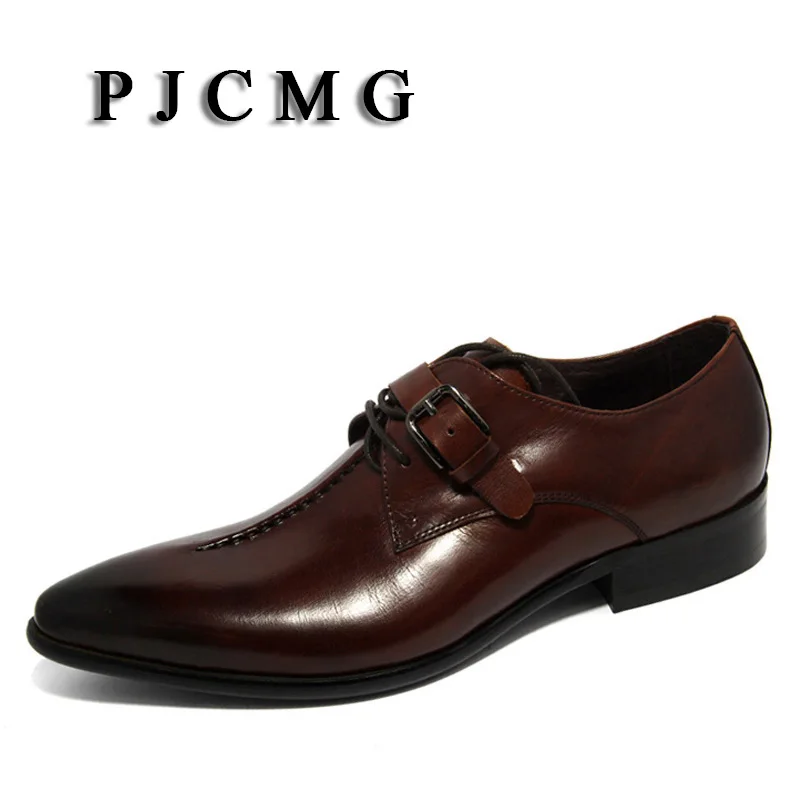 PJCMG oxford Shoes Deep coffee color/Dark yellow/ black mens business