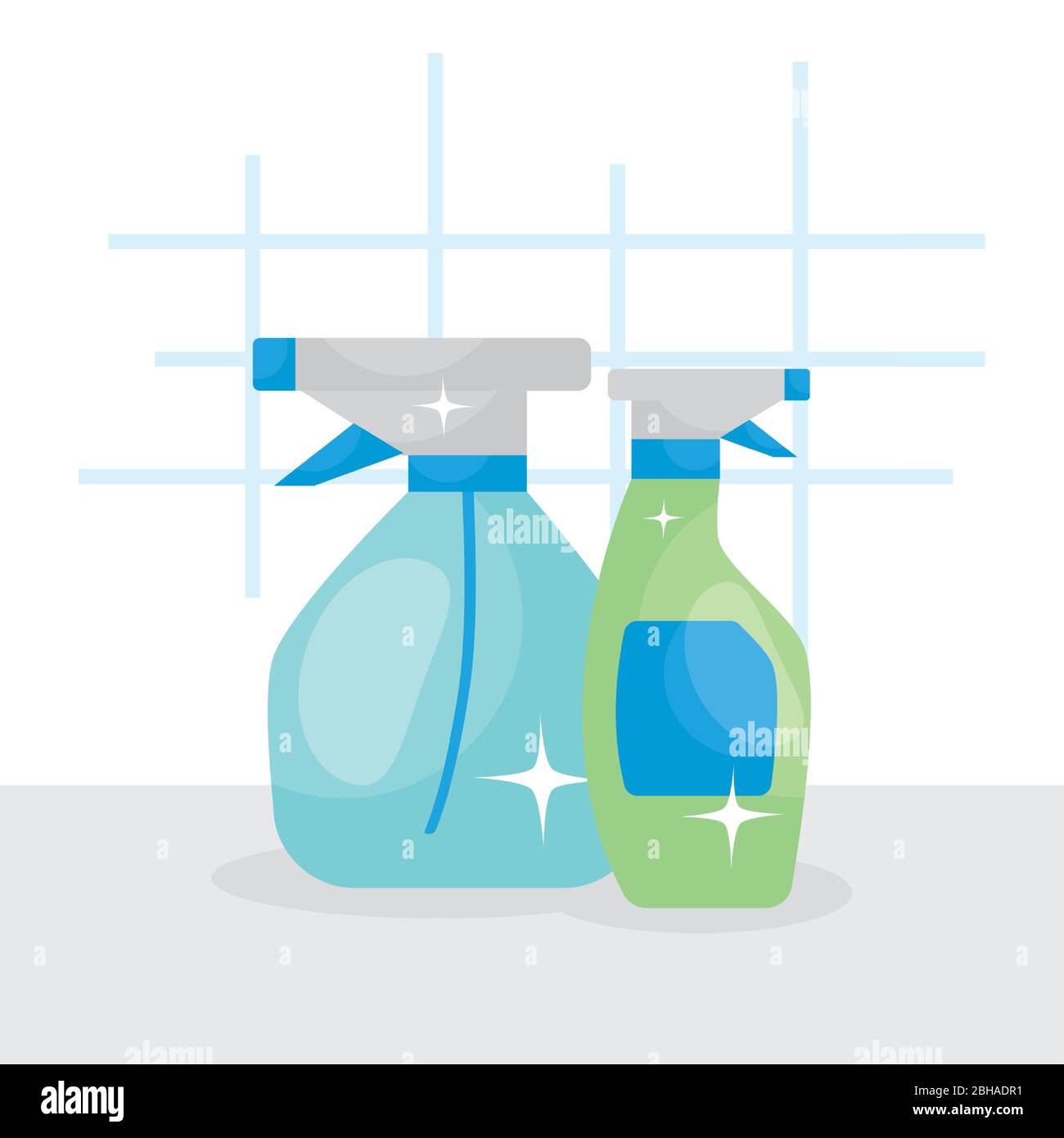 spray cleaning products bottles over white background, colorful design