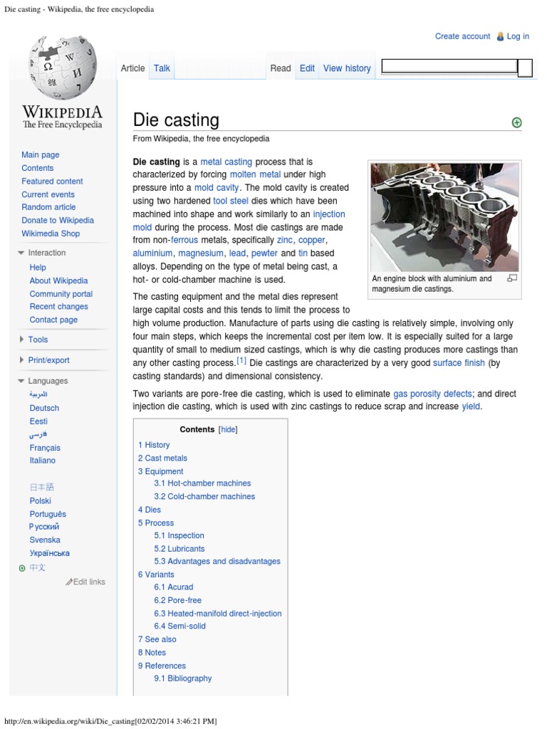 Die Casting Wikipedia, The Free Encyclopedia PDF Casting