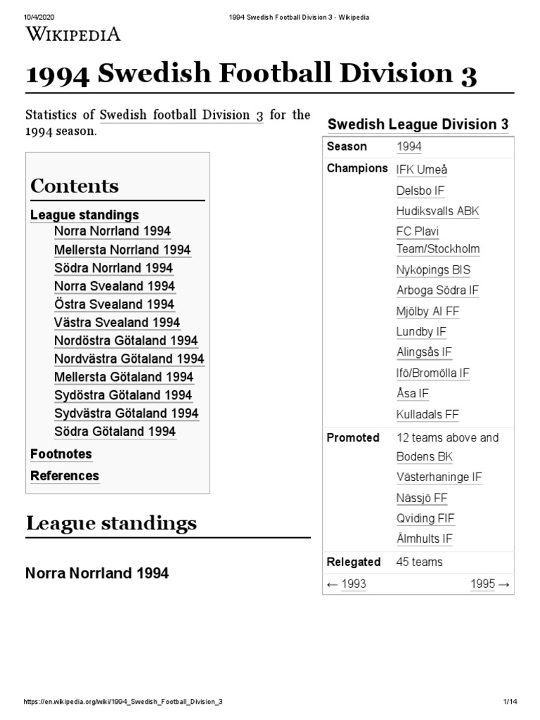 1994 Swedish Football Division 3 Wikipedia PDF Sports Clubs