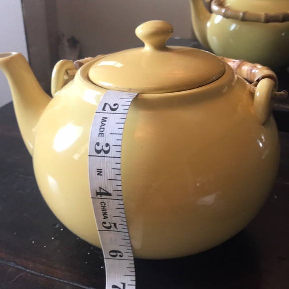 Pottery Barn Kitchen Pottery Barn Teapot Bamboo Handle Yellow Poshmark