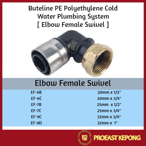 [ Elbow Female Swivel ] Buteline PE Polyethylene Cold Water Plumbing