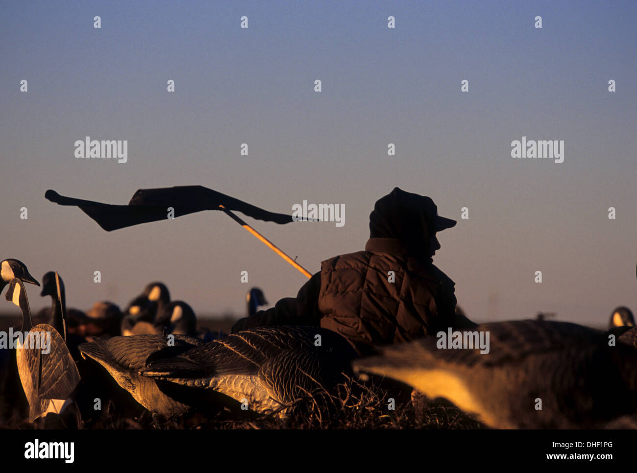 Hunter uses a flag to attract Canada geese (Branta canadensis) while
