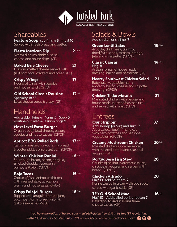 Twisted Fork Restaurant View Our Menu Locally Inspired Cuisine