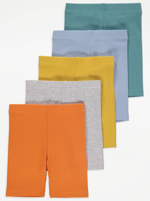 Plain Ribbed Cycling Shorts 5 Pack Kids at ASDA