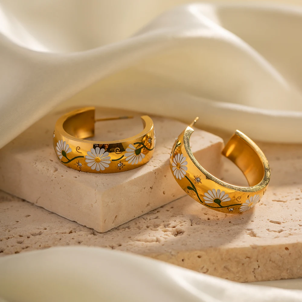 Enameled Wild Daisy Flower Symbolism Cubic Zircon Pvd 18k Gold Plated Hoop Earrings Symbolism What began as a way to identify tribal members turned into symbols of religion and power within societies. In nubia, an african civilization located in what we now call sudan. Time to do some digging into the incredible history of hoop earrings. They date back to ancient. Hoop earrings have been a symbol of beauty, power, and identity across various. Hoop Earrings Symbolism.
