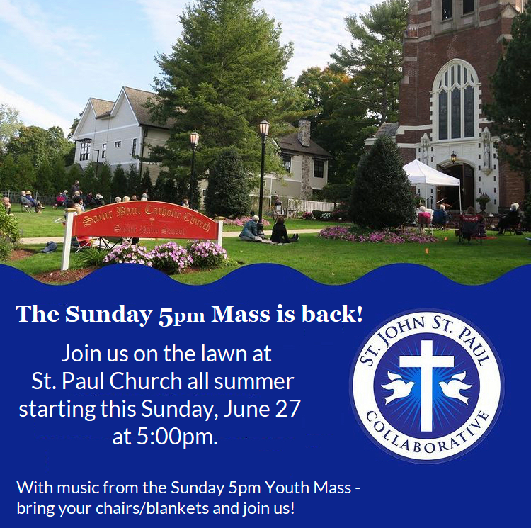 Outdoor Mass is Back! Sundays at 500pm at St. Paul Church St. John