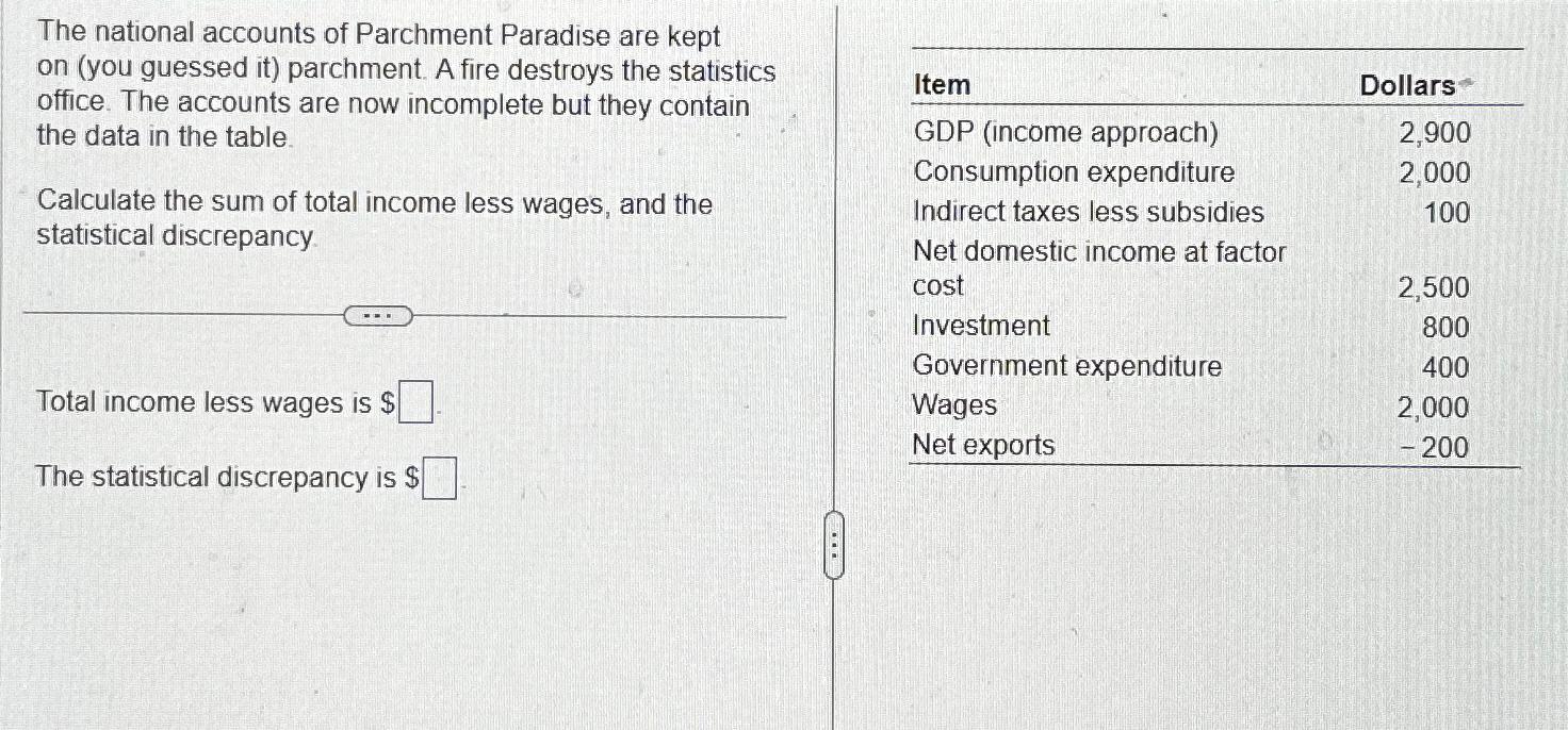 Solved The national accounts of Parchment Paradise are kept