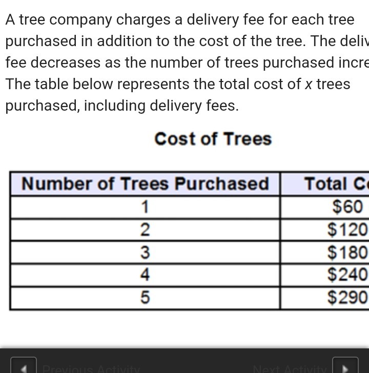 A tree company charges a delivery fee for each tree