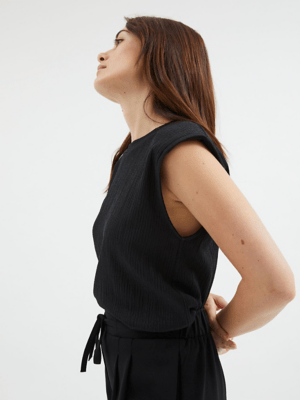 Black Cheesecloth Shoulder Padded Vest Women at ASDA