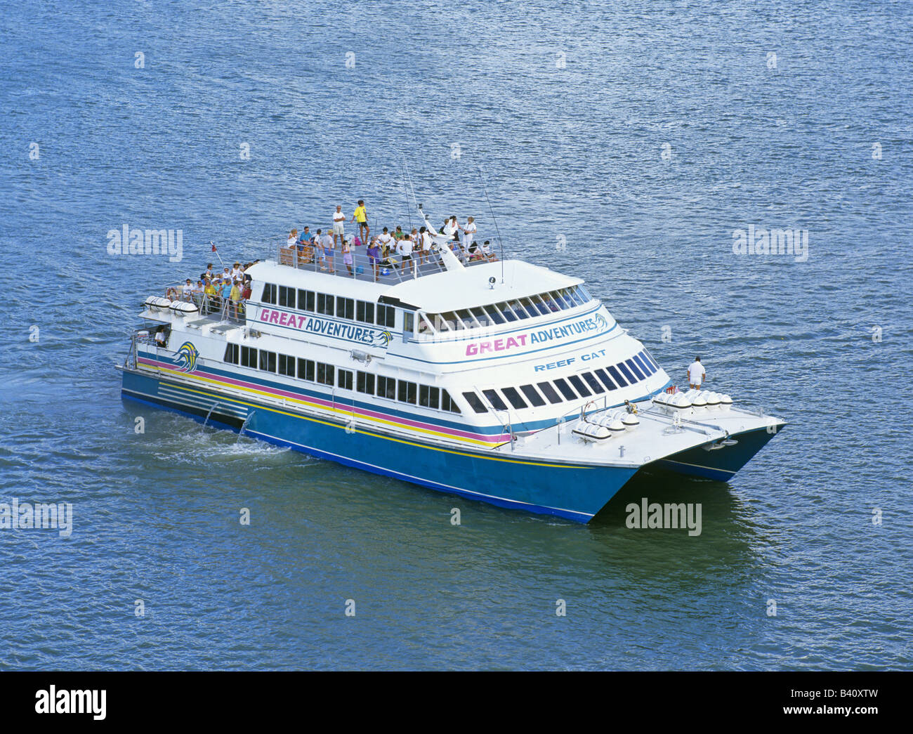 Great Adventure sightseeing boat Cairns Australia Stock Photo Alamy Boating In Cairns Australia Escape to a world of crystal clear waters, vibrant coral reefs, and endless adventure with cairns boat charter. Whether it's an entertaining and informative boat tour or a relaxing sunset. Snorkelling and glass bottom boat at green island from cairns. Boarding daily in cairns at 7:30 am from cairns marlin marina. Alternatively, helicopter transfers are low flying scenic excursions over. Boating In Cairns Australia.