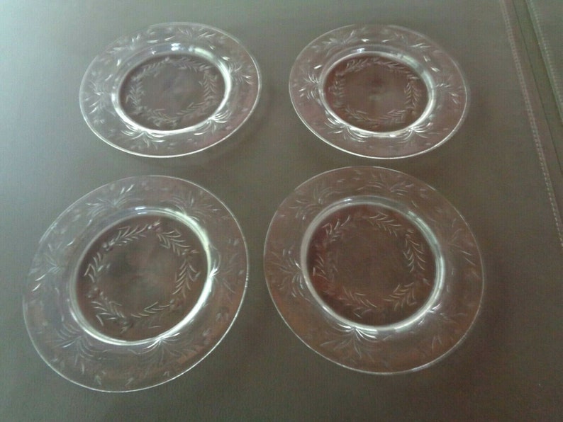 4 Vintage Etched Glass 10 Salad or Dinner Plates Etsy