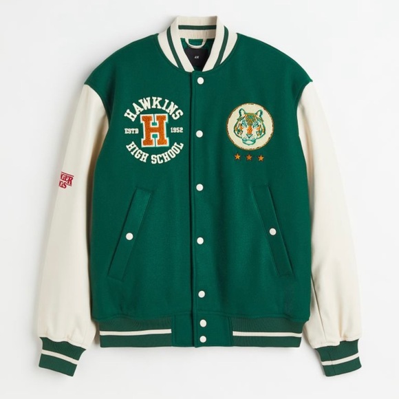 H&M varsity jacket Baseball jacket Depop H&M Varsity Jackets Update your outerwear wardrobe with our broad range of men’s bomber jackets. Looking for that lovely ivy league leisure look? Now you can find all the varsity wear you want, almost without even trying. Varsity jackets, relaxed denim trousers, baguette bags, chunky trainers and caps. Step into the universe of the iconic series stranger things with this. Hawkins high school. H&M Varsity Jackets.
