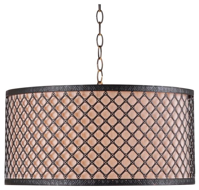 Hawthorn 3Light Pendant Oil Rubbed Bronze Tan Fabric Shade