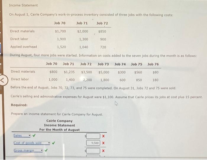 Solved On August 1, Cairle Company's workinprocess