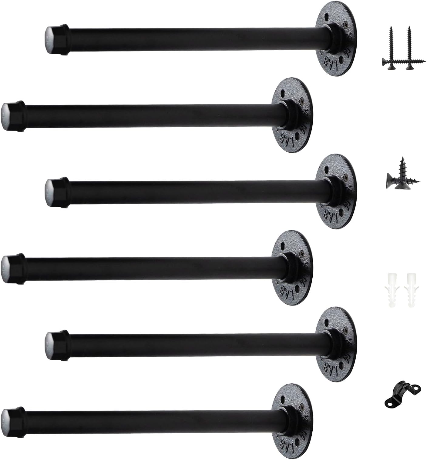 Pipe Bracket (6 Packs Black) Industrial DIY L Pipe Shelf Bracket for Wood Floating Shelf
