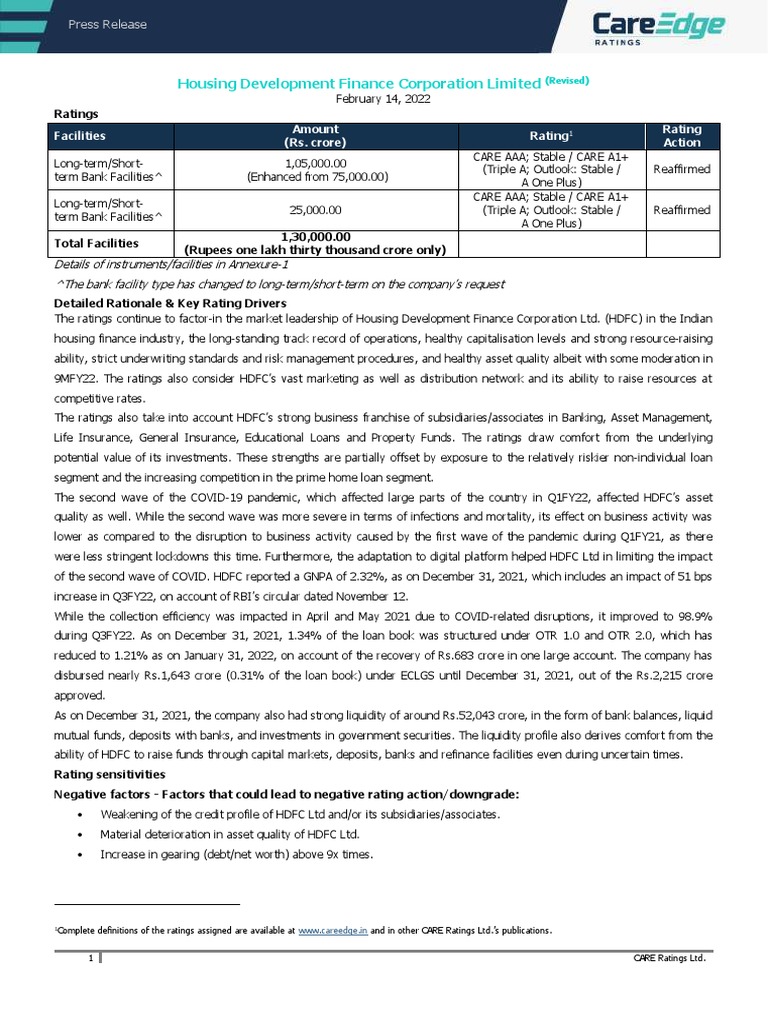 Housing Development Finance Corporation Limited PDF Market