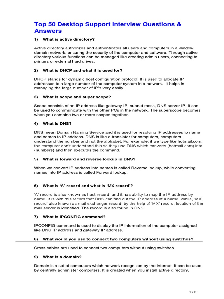 Top 50 Desktop Support Interview Questions PDF Business