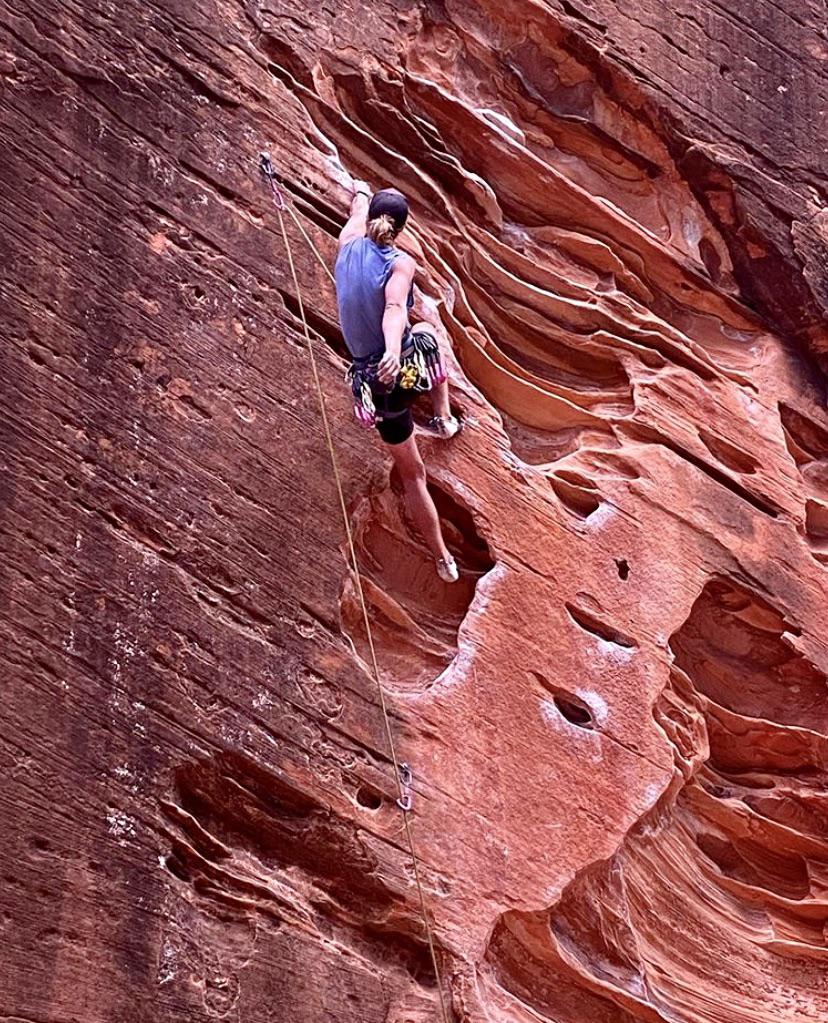 Leading Namaste at Namaste wall in Southern Utah dream wall for sport