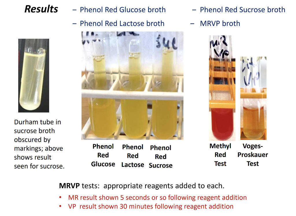 Solved Results Phenol Red Glucose broth Phenol Red Sucrose Phenol Red Fermentation Test It is recommended for the determination of fermentation reactions of microorganisms, especially enteric bacilli and enterococcus. Durham tubes are inserted upside down in the test tubes to detect gas production. A change in color in the tube from red or orange to yellow or clear indicates that the organism has fermented that particular carbohydrate, producing acid end products. Other ph. Phenol Red Fermentation Test.