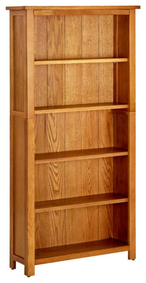 Vidaxl 5Tier Bookcase 27.5"X8.6"X55.1" Solid Oak Wood Transitional