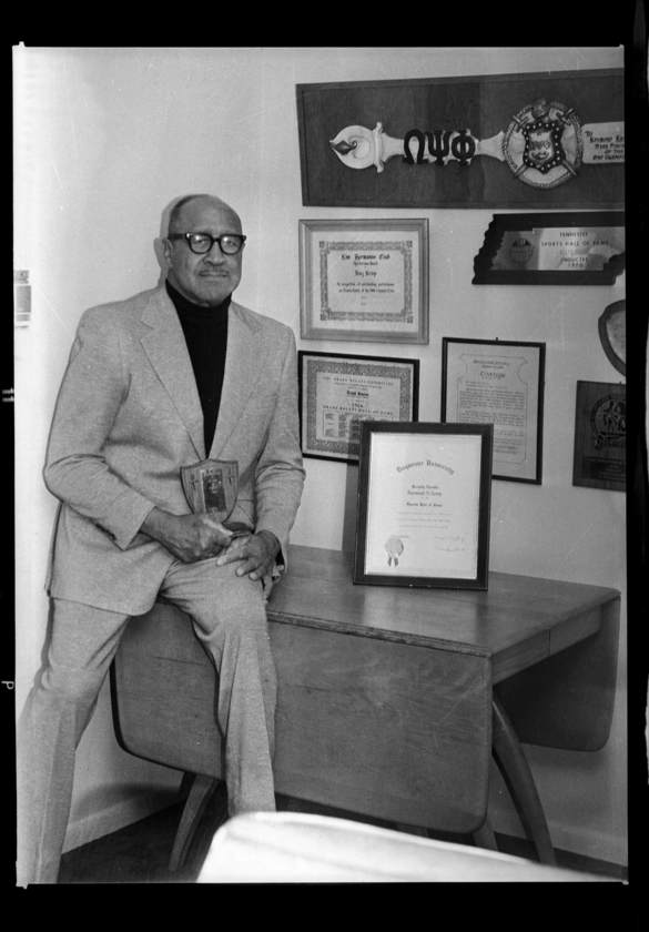 Raymond Kemp seated on table with certificate reading “Duquesne