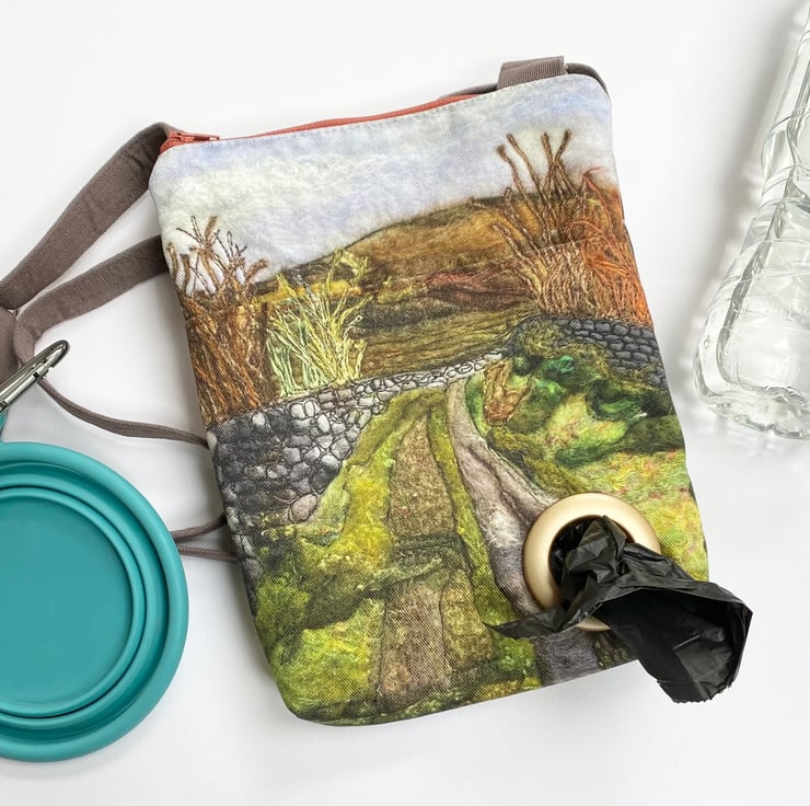 Cross body dog walking bag with adjustable strap. Folksy