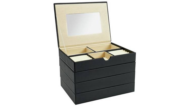 Buy Black Faux Leather Stacking Jewellery Box Jewellery boxes and Jewellery Box At Argos Open storage (stands, catchalls, trays) and closed storage (boxes, drawers, cases). From travel cases to glass display boxes. Jewelry organizers fall into two categories: Keep your collection untangled and nicely sorted with options starting at just $14. Whether you’re after a fine piece of jewellery or a box to store it, our boxing day sale is sure to give you. Jewellery Box At Argos.