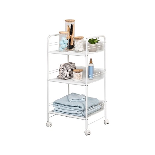 HoneyCanDo 3Shelf Metal Mobile Utility Cart with Lockable Wheels, White (CRT08581) Staples