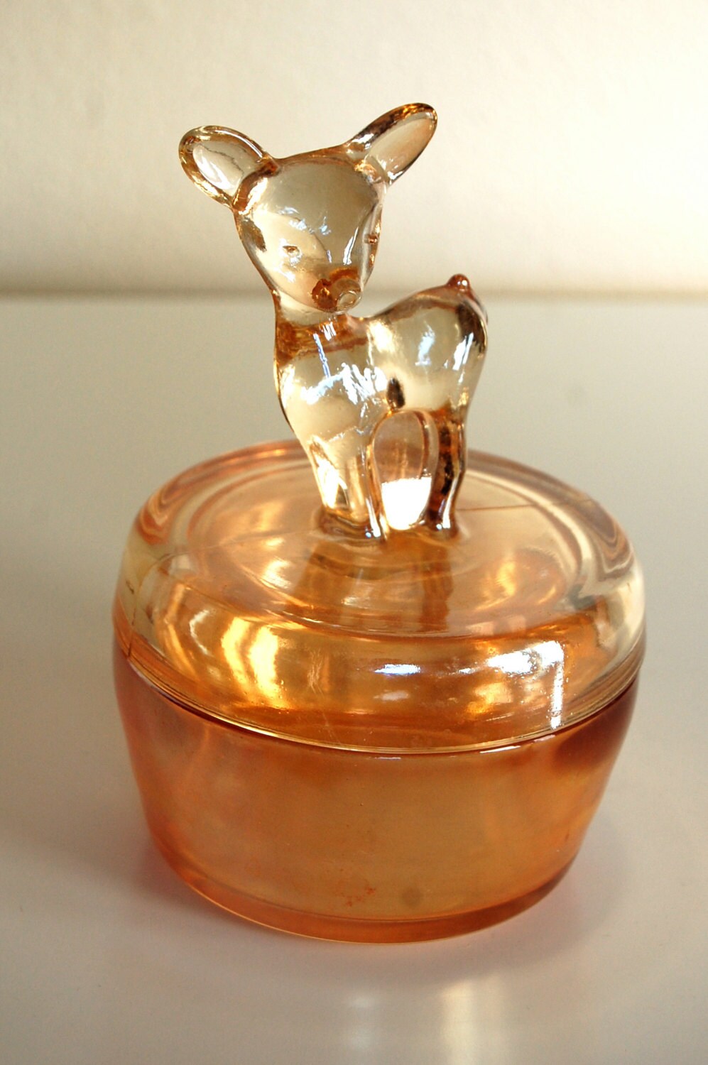 Vintage Carnival Glass Baby Deer Candy Dish Glass Box Amber