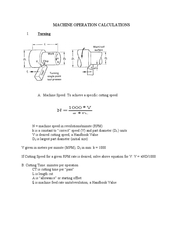 Machining Time Calculations PDF Metalworking Industrial Processes