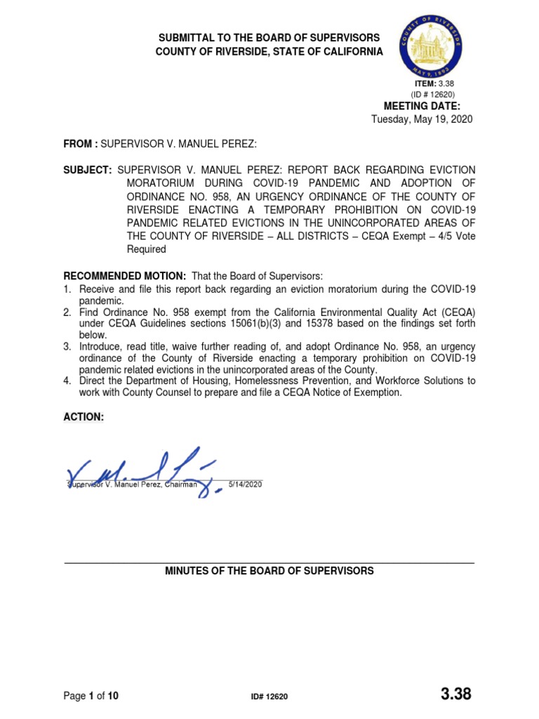 Proposed Riverside County Eviction Moratorium PDF Eviction Landlord